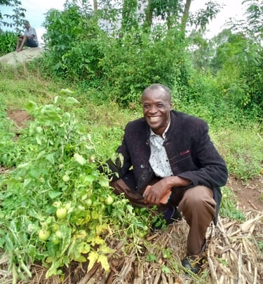 "We visited Michael Mathenge. He was glad to see us and to hear that we walked all the way from our place to reach him at that far end of the Mutomo village. He allowed us to walk in his farm, which is big in size. On his farm he thanked Apostle Jackie Dozier for the support of 4 packets of maize seeds. He planted them, and indeed they are WOW! WOW! WOW!. However, he said that the only challenge was how to get fertilizer and that he didn't plant on time. But then he thanked the Lord. Look at the video and the photo." Carolyn, Jenga Volunteer